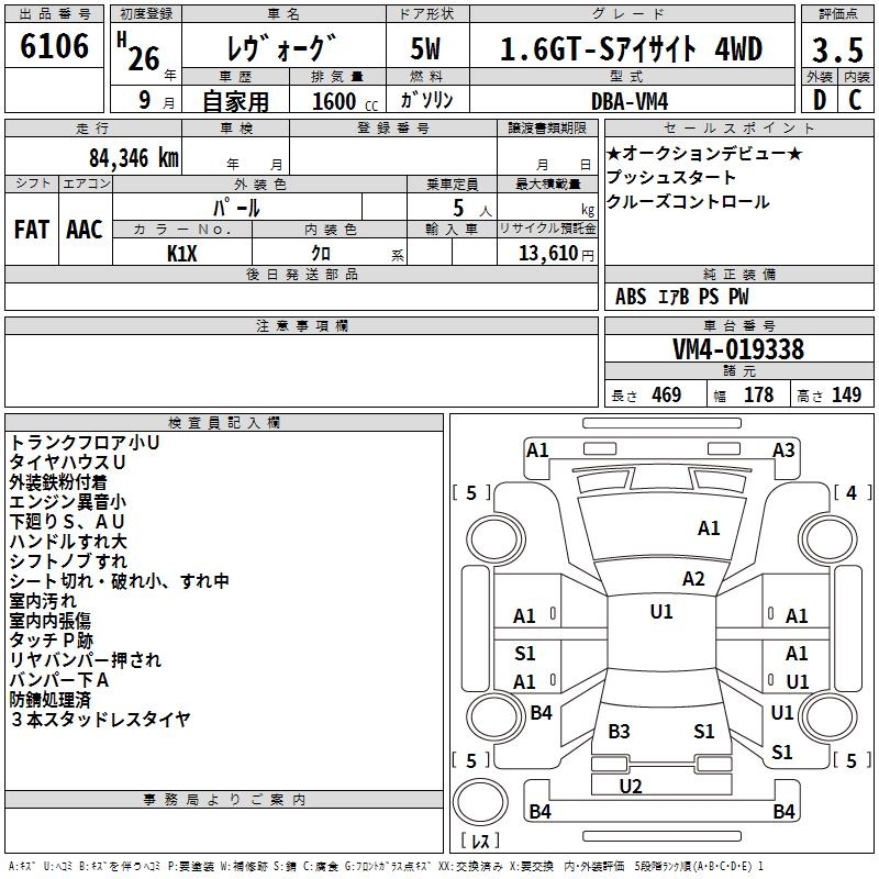 SUBARU LEVORG 1.6GT-S EYESIGHT 4WD - лот 6106