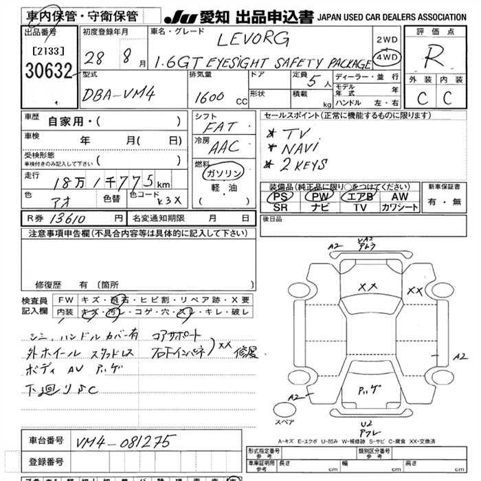 Все аукционы SUBARU LEVORG