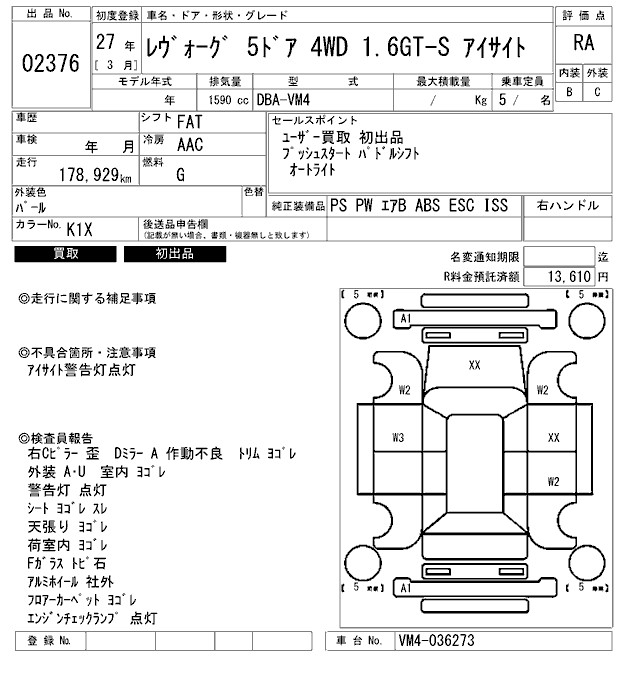 SUBARU LEVORG 1.6GT-S EYESIGHT - лот 2376