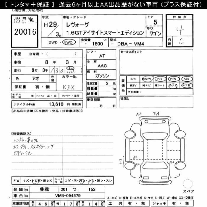 SUBARU LEVORG 4WD 1.6GT EYESIGHT SMART EDITION - лот 20016