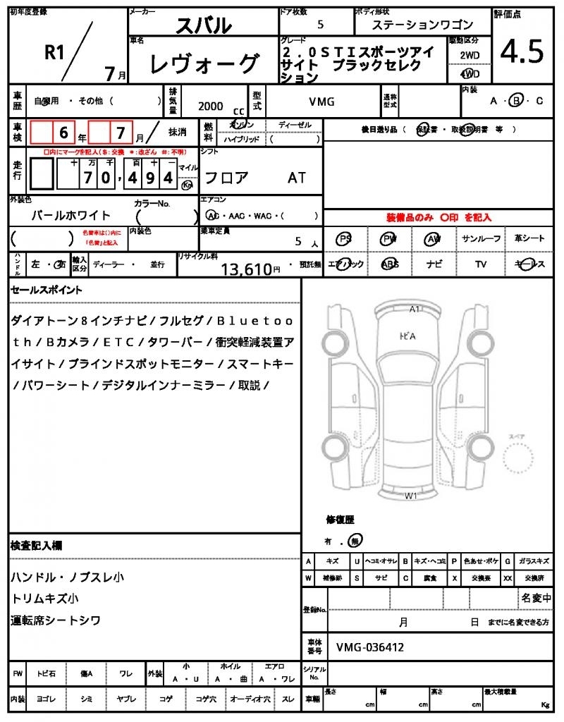 SUBARU LEVORG - лот 44231