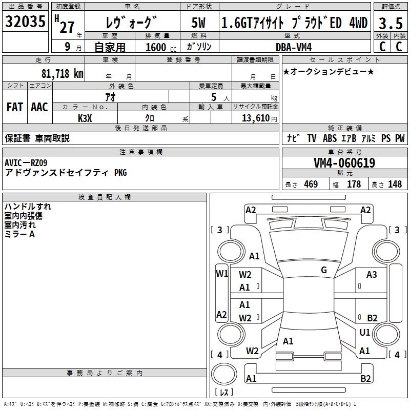 SUBARU LEVORG - лот 32035