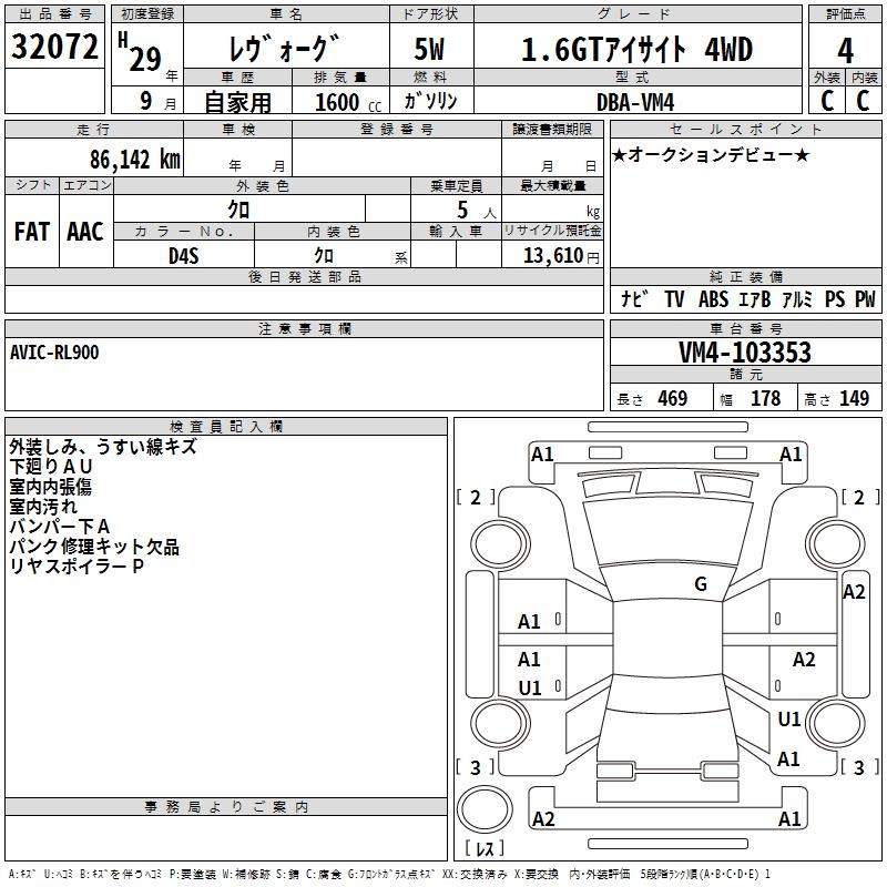 SUBARU LEVORG - лот 32072