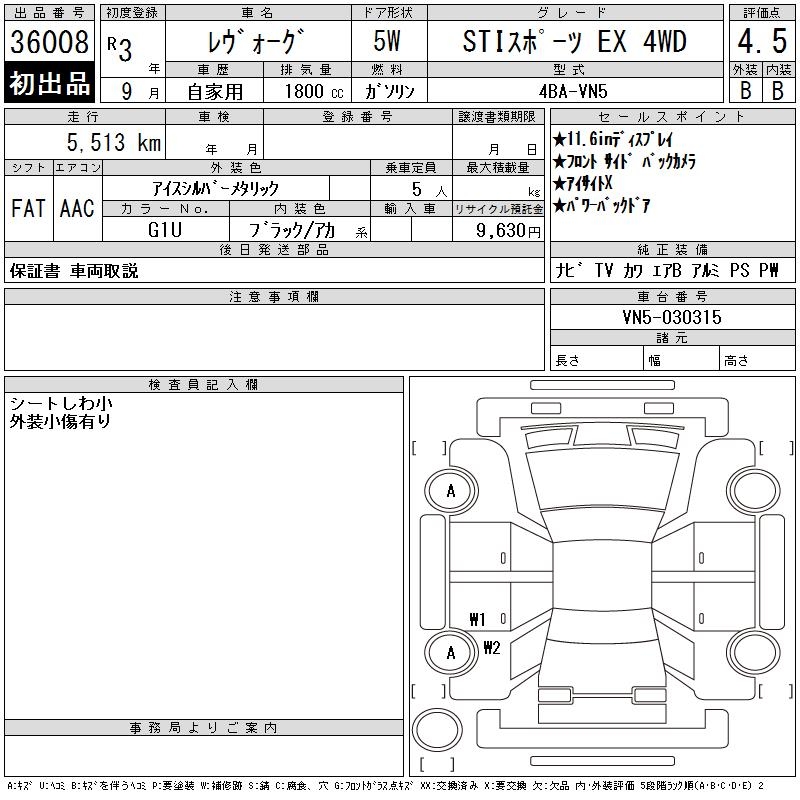 SUBARU LEVORG - лот 36008