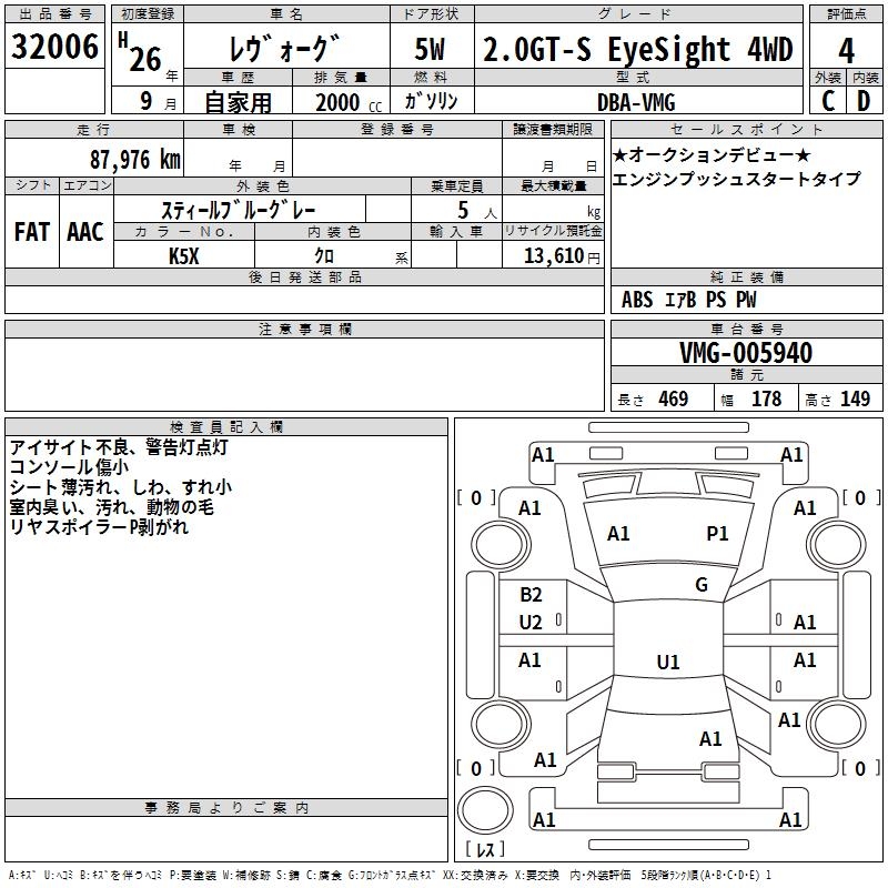 SUBARU LEVORG - лот 32006