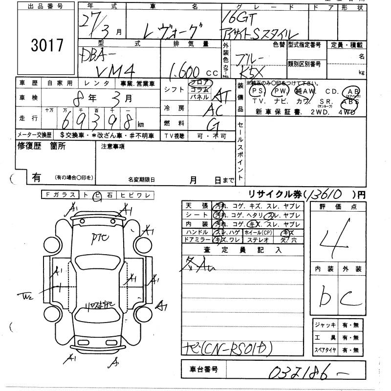 SUBARU LEVORG - лот 3017