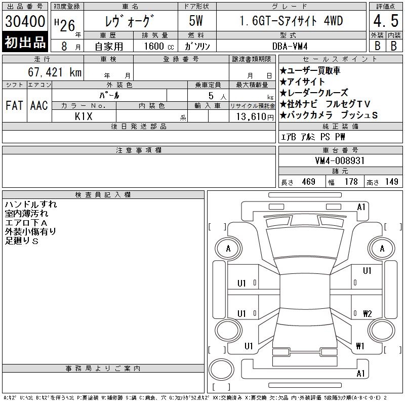 SUBARU LEVORG - лот 30400