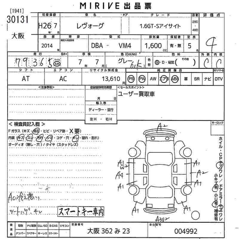 SUBARU LEVORG - лот 30131