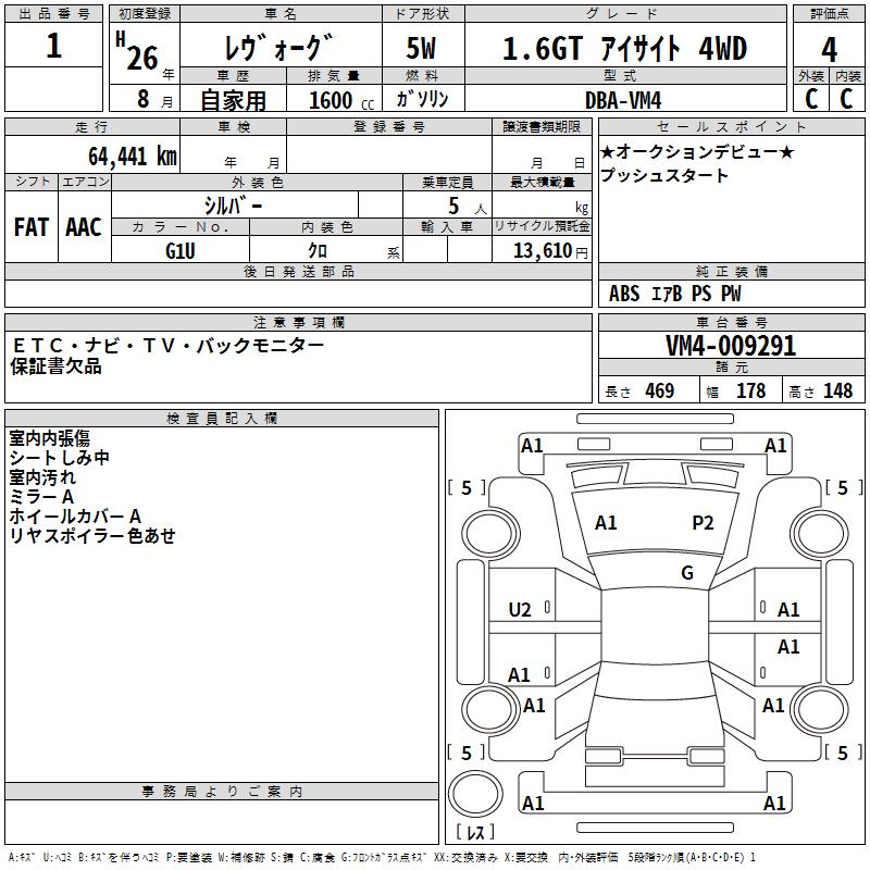 SUBARU LEVORG 1.6GT EyeSight 4WD - лот 1