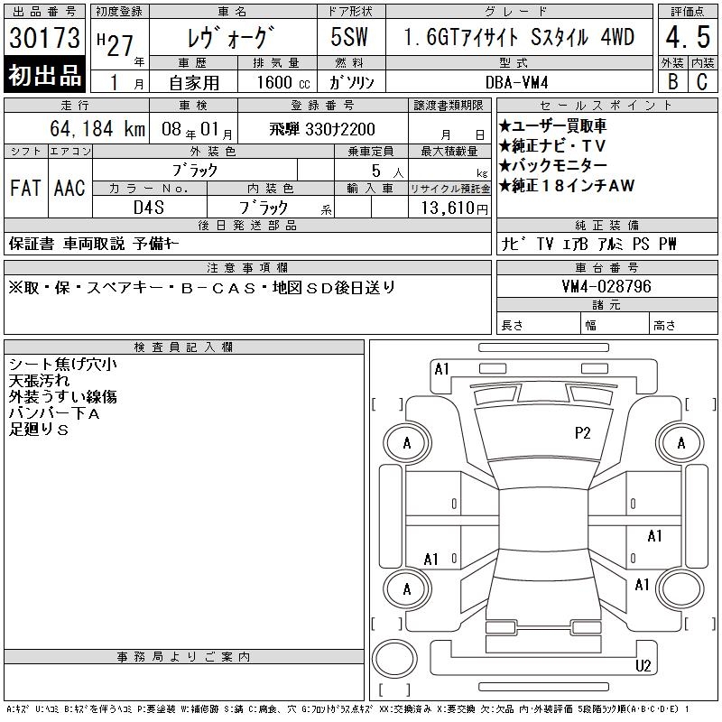 SUBARU LEVORG - лот 30173