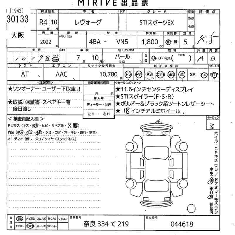 SUBARU LEVORG - лот 30133