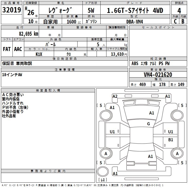 SUBARU LEVORG - лот 32019