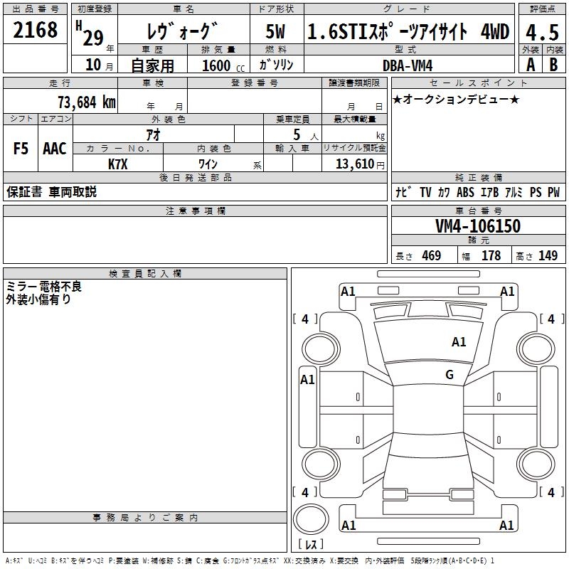 SUBARU LEVORG - лот 2168