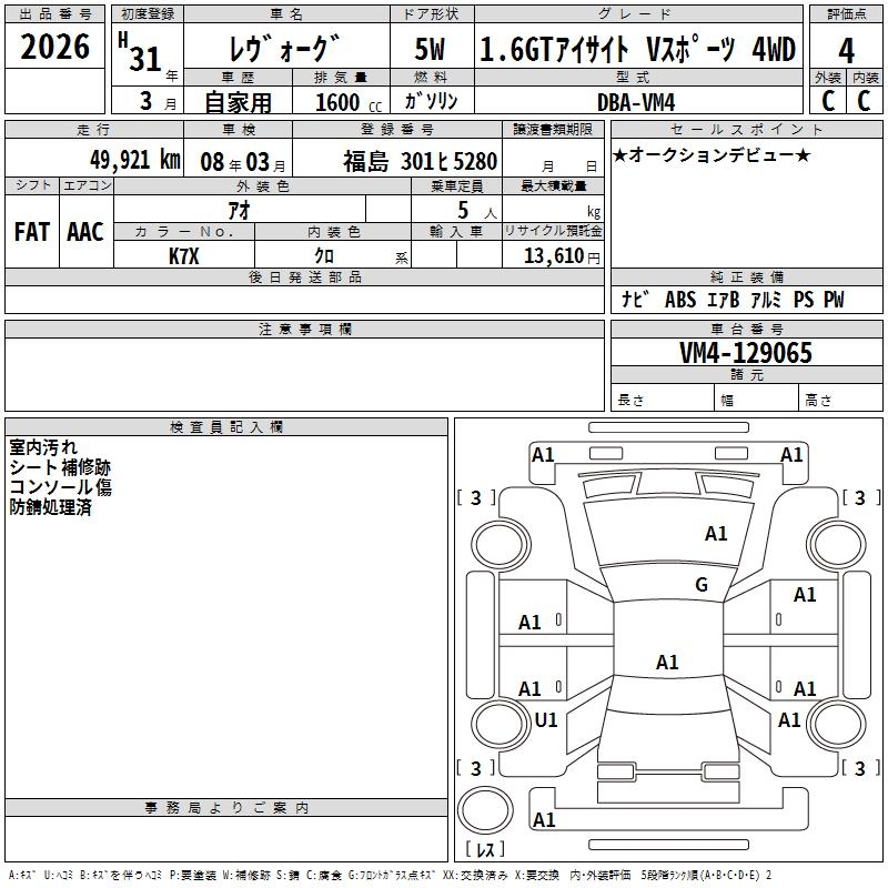SUBARU LEVORG - лот 2026