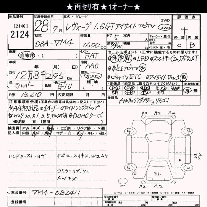 SUBARU LEVORG - лот 2124