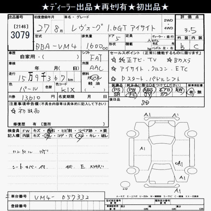 SUBARU LEVORG - лот 3079