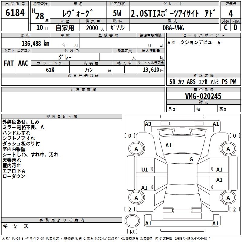 SUBARU LEVORG - лот 6184