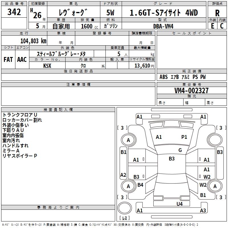 SUBARU LEVORG - лот 342