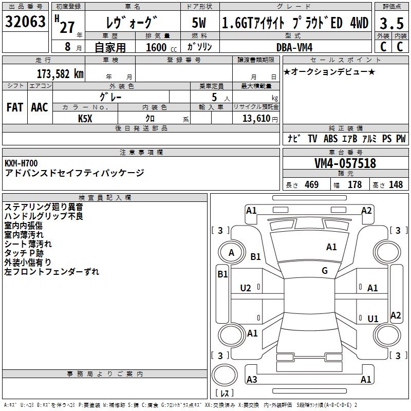 SUBARU LEVORG - лот 32063