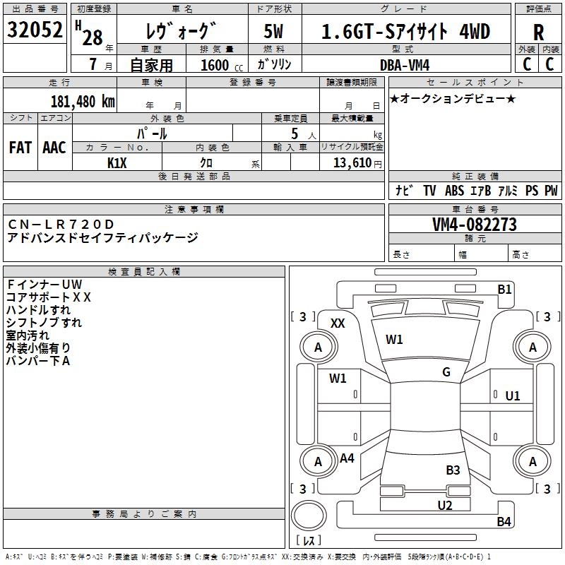 SUBARU LEVORG - лот 32052