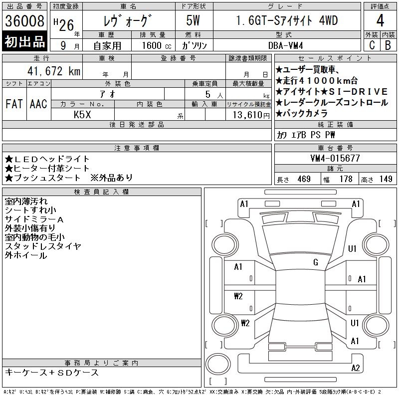 SUBARU LEVORG - лот 36008