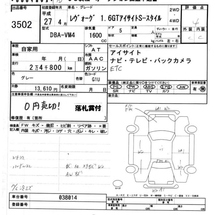 SUBARU LEVORG - лот 3502