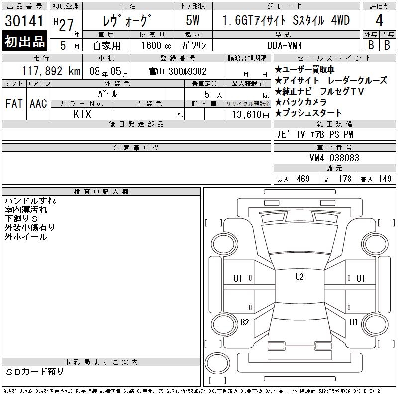 SUBARU LEVORG - лот 30141