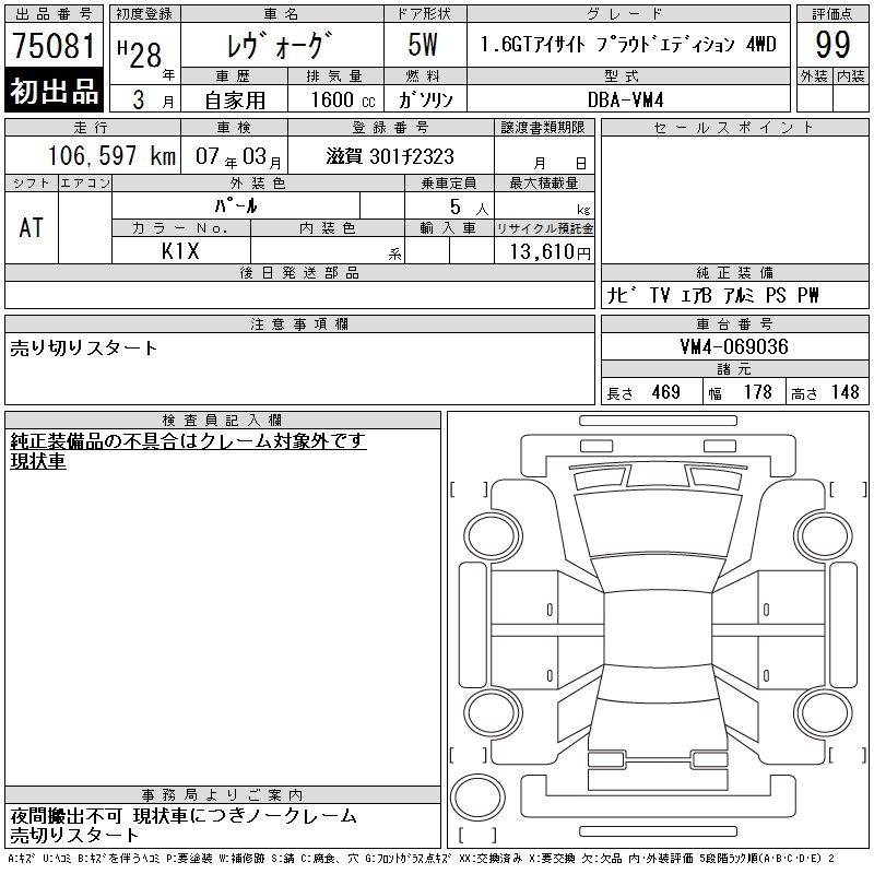 SUBARU LEVORG - лот 75081