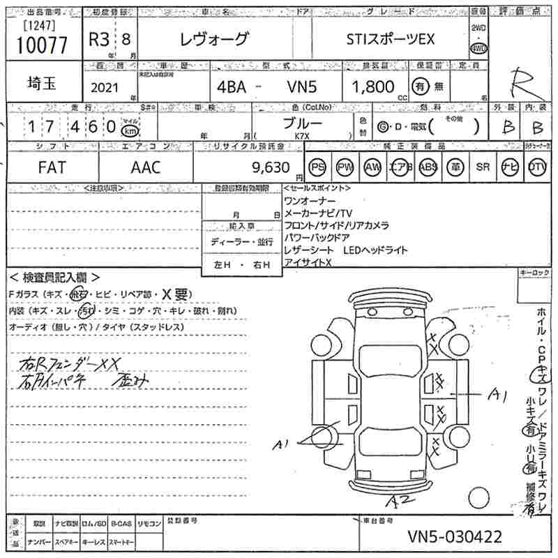 SUBARU LEVORG - лот 10077