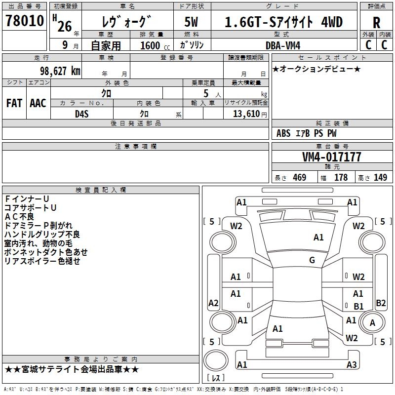 SUBARU LEVORG - лот 78010
