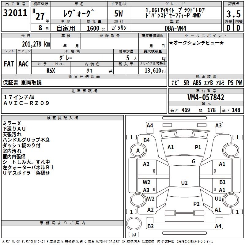 SUBARU LEVORG - лот 32011