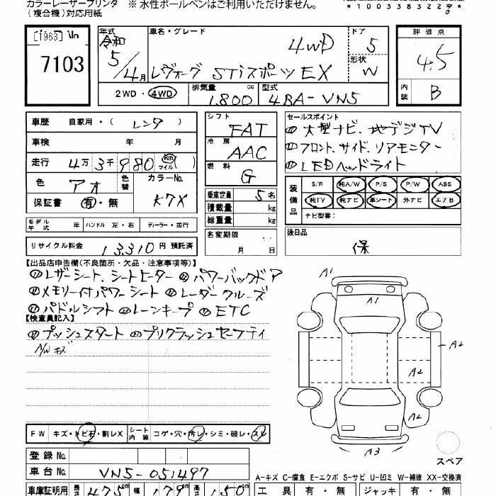 SUBARU LEVORG - лот 7103