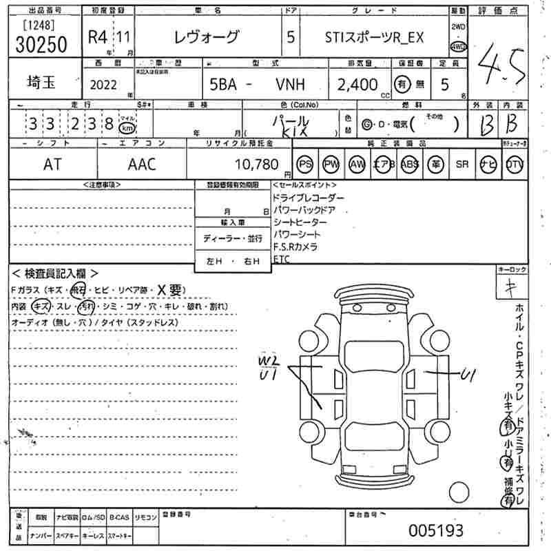 SUBARU LEVORG - лот 30250