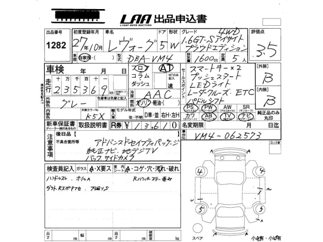 SUBARU LEVORG - лот 1282
