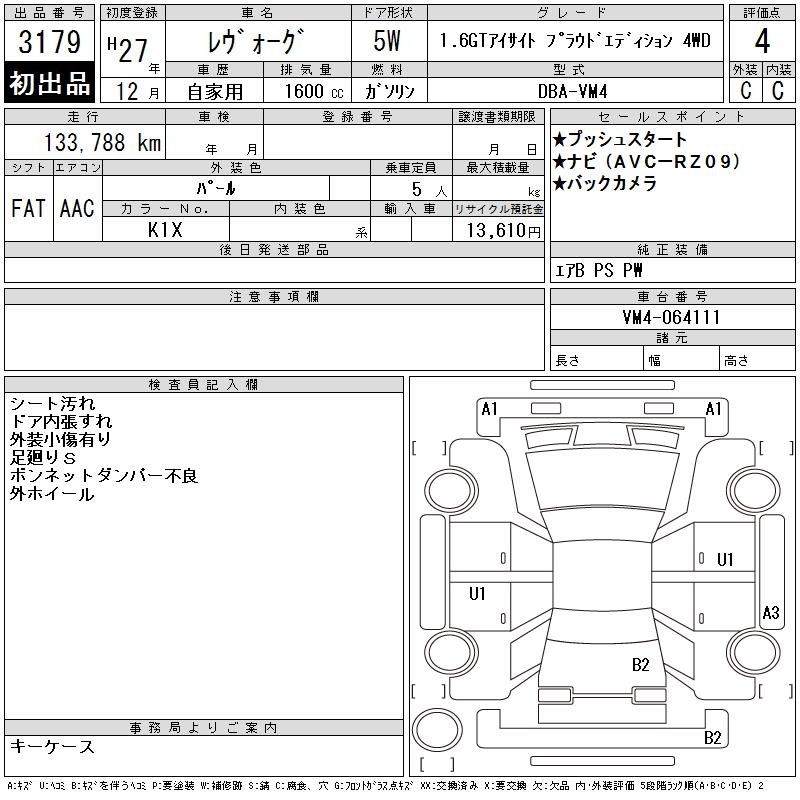SUBARU LEVORG - лот 3179