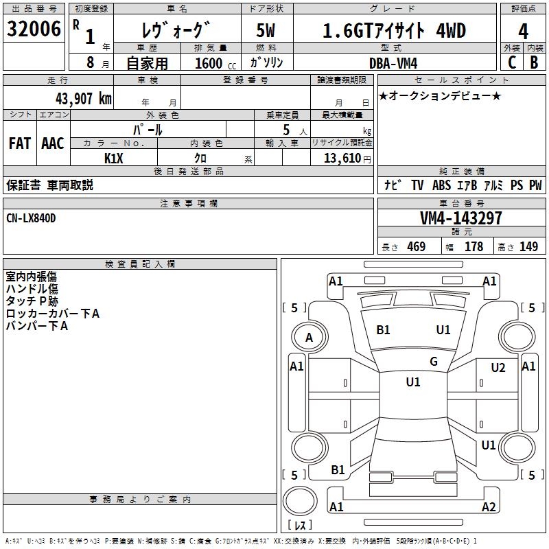 SUBARU LEVORG - лот 32006