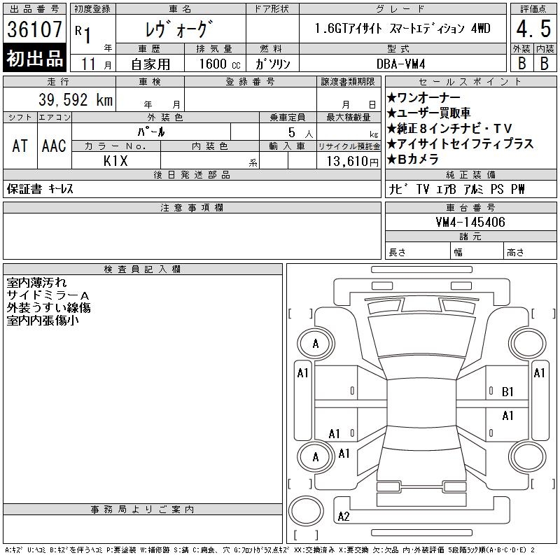 SUBARU LEVORG - лот 36107