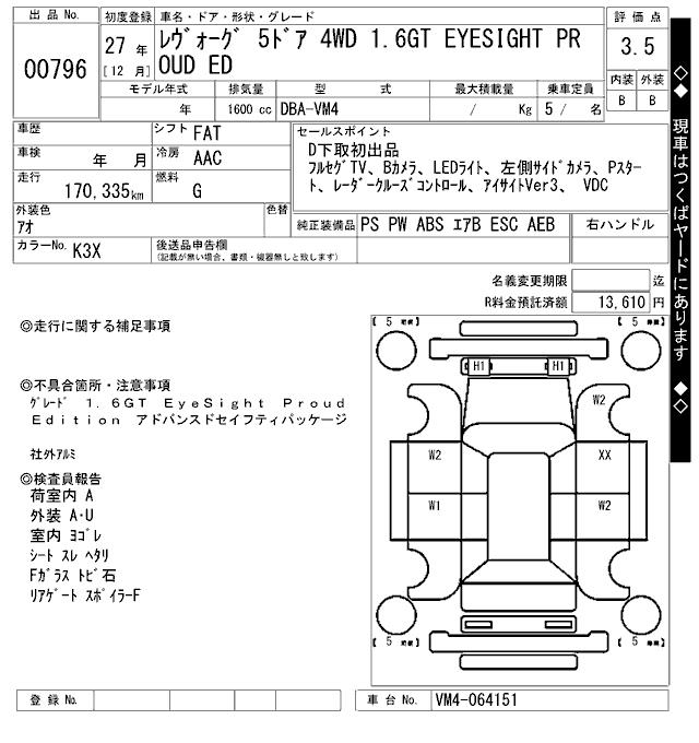 SUBARU LEVORG - лот 796