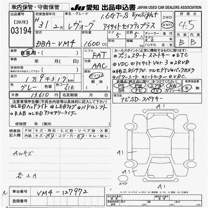 SUBARU LEVORG - лот 3194