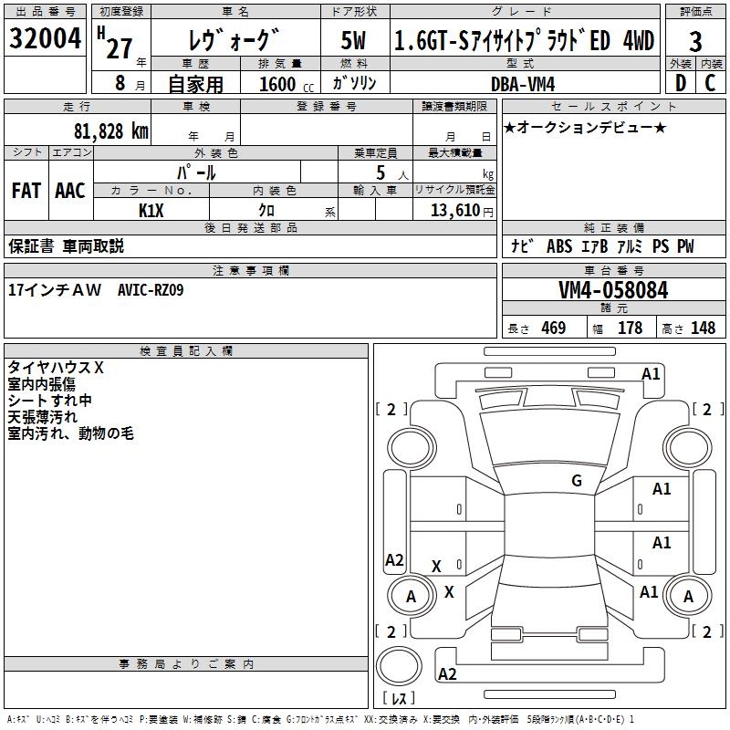 SUBARU LEVORG - лот 32004
