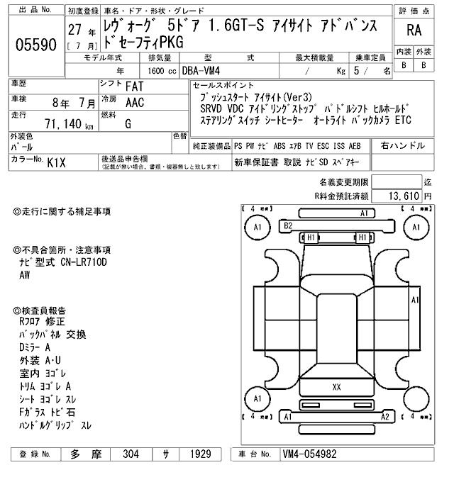 SUBARU LEVORG - лот 5590