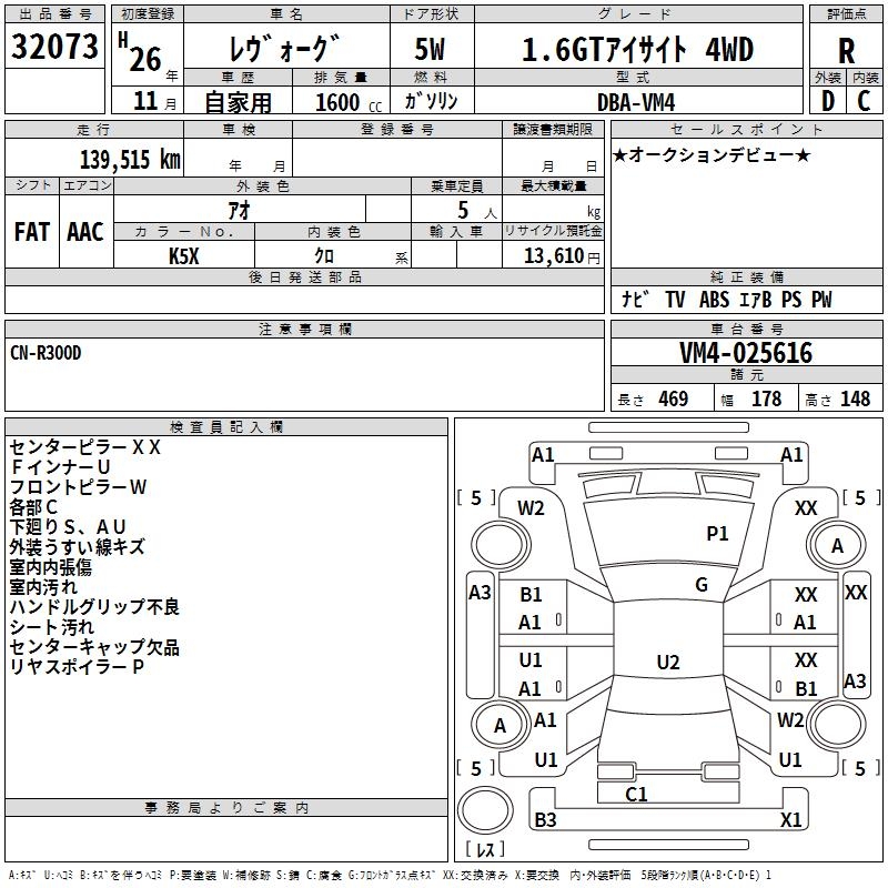 SUBARU LEVORG - лот 32073
