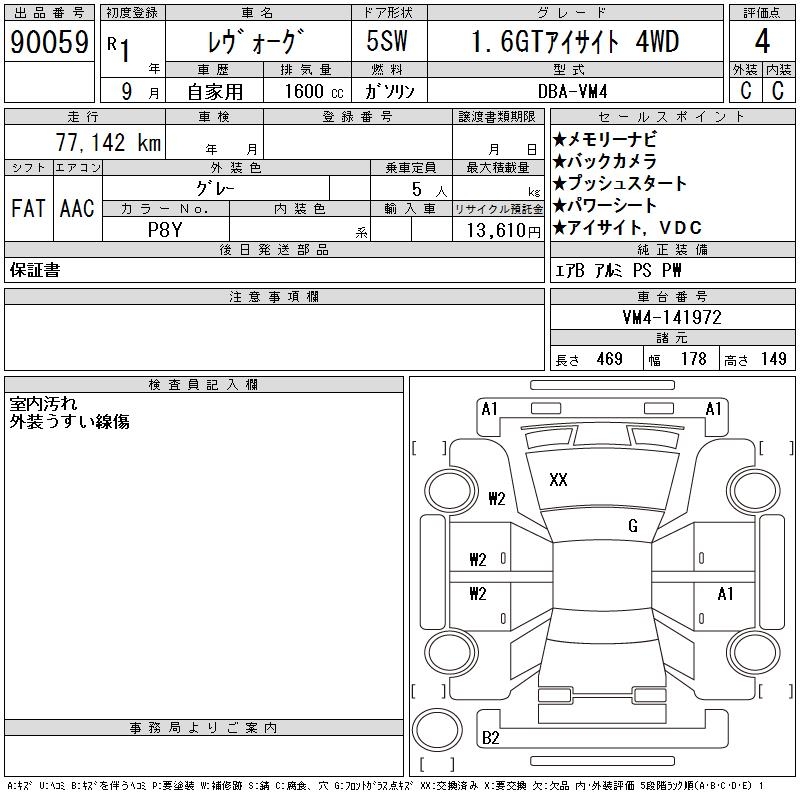 SUBARU LEVORG - лот 90059