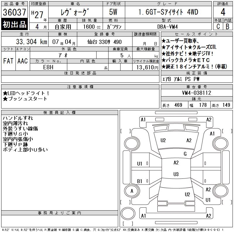 SUBARU LEVORG - лот 36037