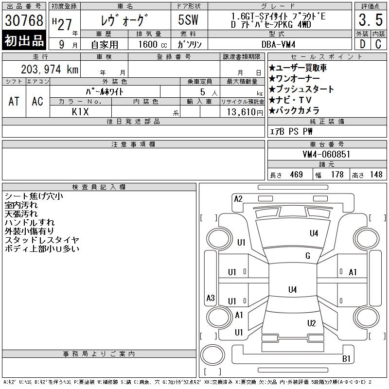SUBARU LEVORG - лот 30768