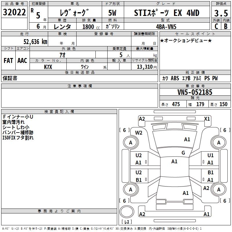 SUBARU LEVORG - лот 32022