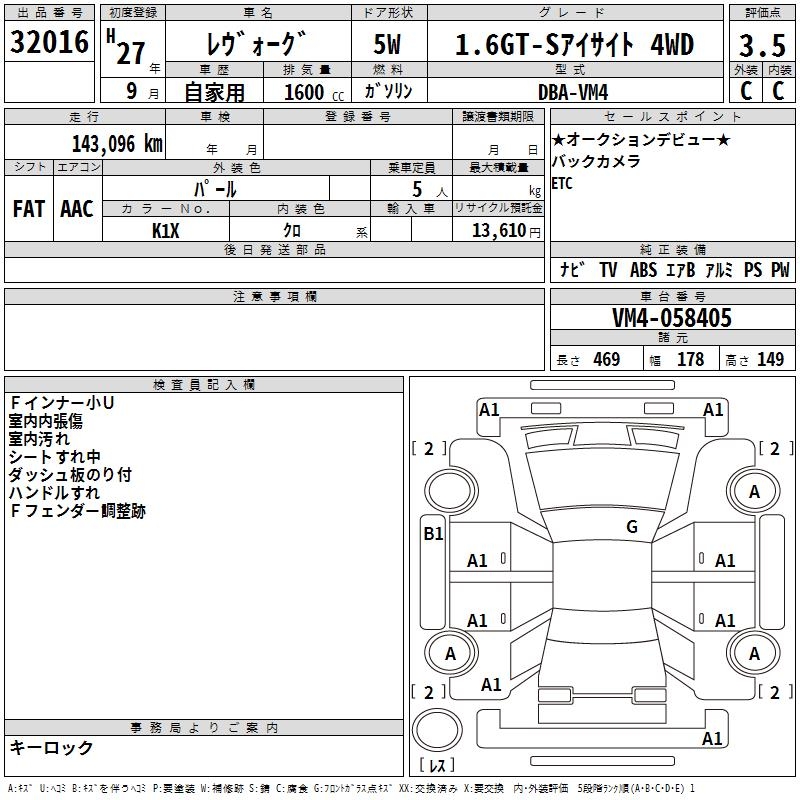 SUBARU LEVORG - лот 32016