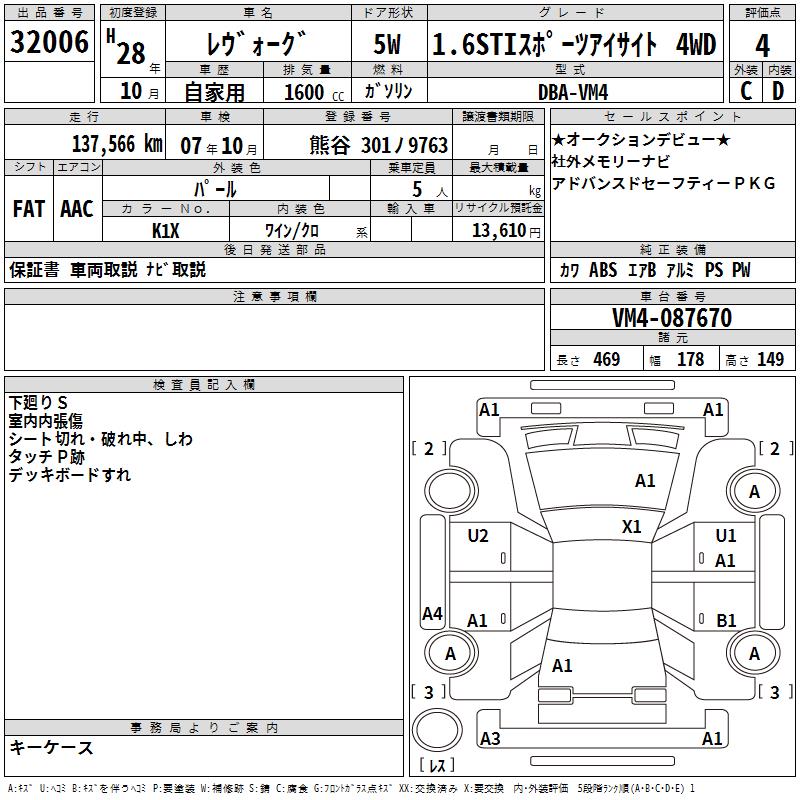 SUBARU LEVORG - лот 32006