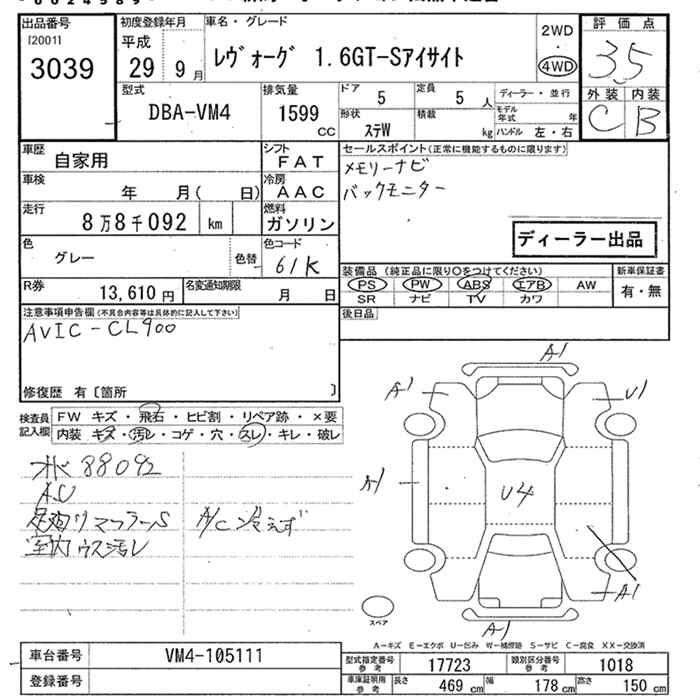 SUBARU LEVORG - лот 3039