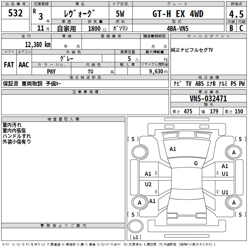 SUBARU LEVORG - лот 532